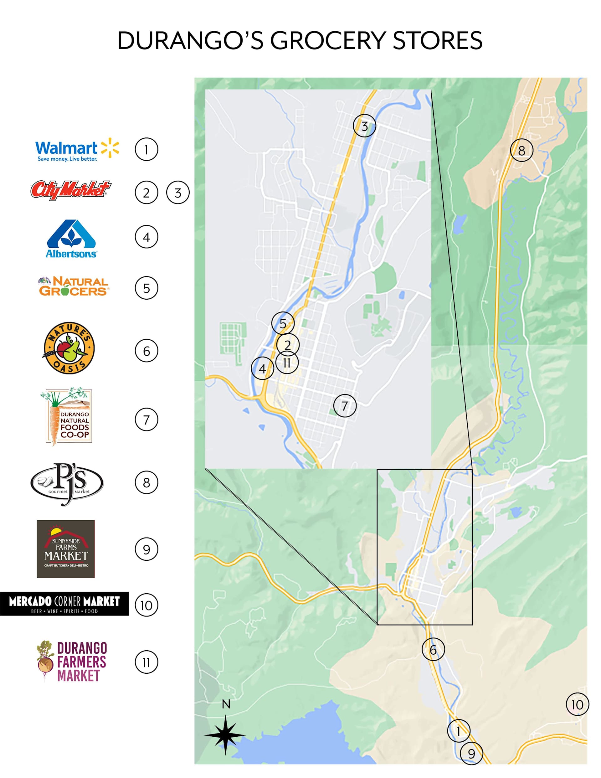 Smaller convenience type stores are becoming more popular as certain neighborhoods grow in the Durango area. PJ’s Gourmet Market serves the Animas Valley, Mercado Corner Market is located in Three Springs, and Meadow Market is a newer addition in Edgemont.