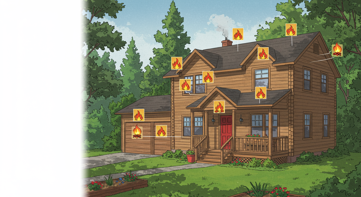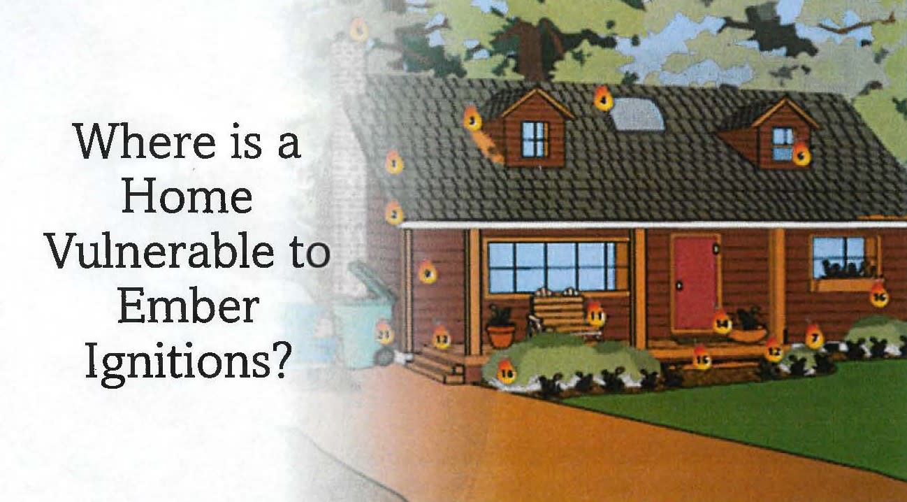 There are many spots that are vulnerable to ember ignitions on the exterior of your home. This includes chimneys, bushes, items stored under a deck, skylights, roof to wall intersections, and more. A good place to start is where leaves and pine needles pile up. Keeping these areas clear from combustibles is an easy and achievable way to prevent an ignition spot.