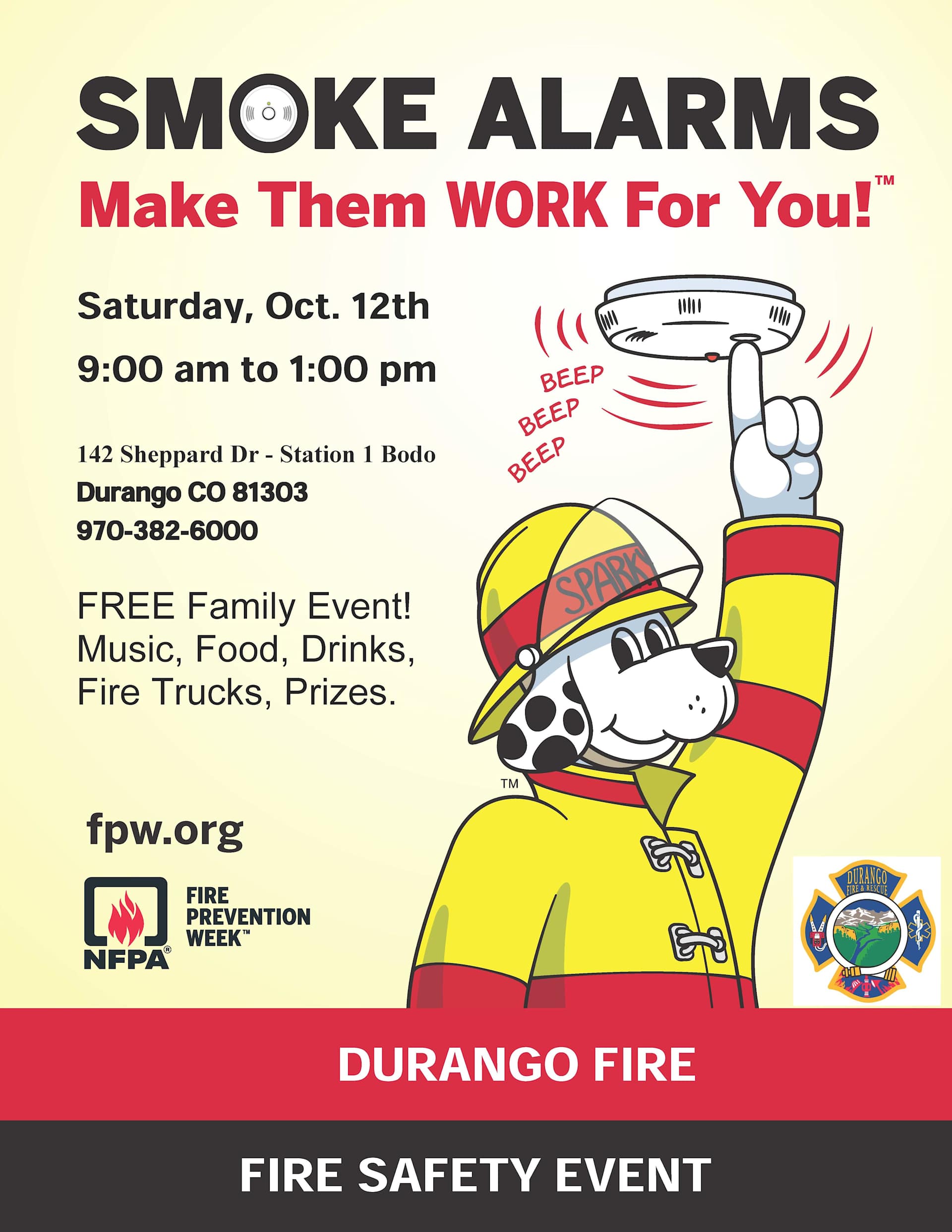 Hosted by the Durango Fire Protection District, this free event at Durango Fire & Rescue Station 1 in Bodo Industrial Park offers education on smoke alarms and other fire safety in the home. Hot dogs, ice cream, Sparky (the fire dog), fire engine demonstrations, and more will be available! Open to the public from 9 am - 1 pm on October 12, this is a great community resource!