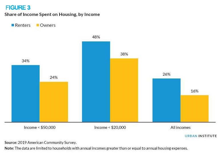 Based on an Urban Institute 2019 American Community Survey, homeowners spend 10% less on housing than renters.
