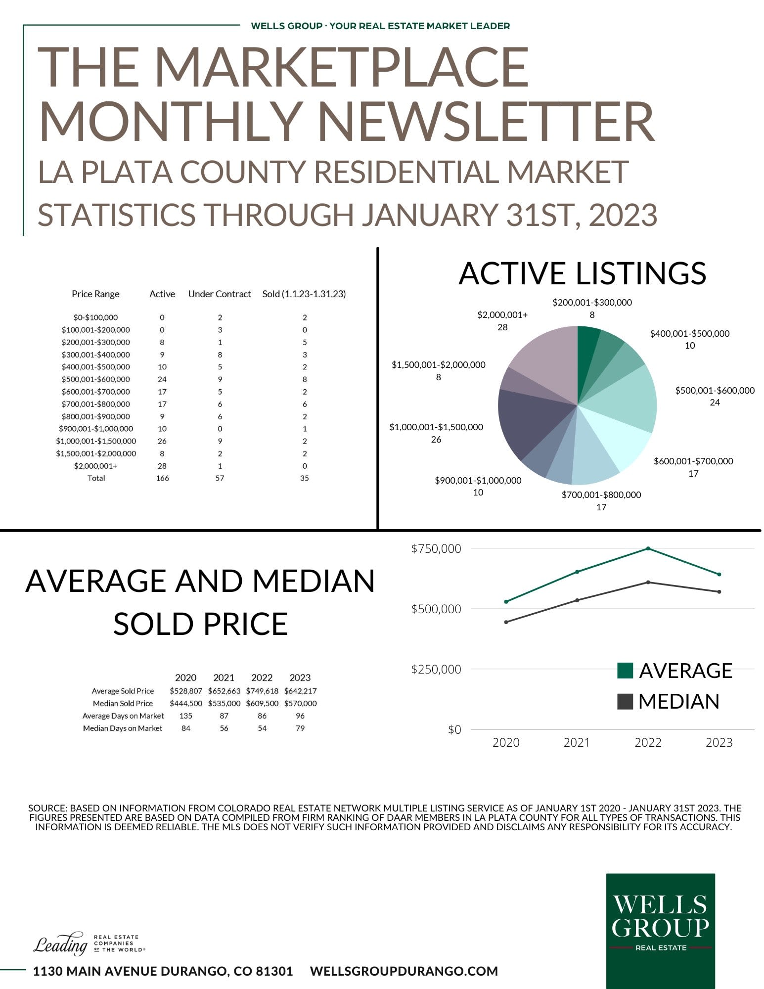 Every month, The Wells Group records La Plata County real estate activity to gain insight into the trends in sales, listings, and prices. With this information, we gain valuable market knowledge and perhaps foresee where the upcoming months will go.
